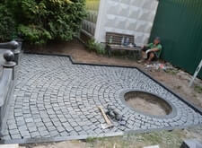 Большой мемориальный комплекс с круглыми столбами и большой замощенной площадкой
