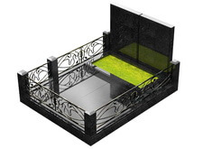 Четыре макета вариантов центральных плит памятников и цветников. Очень удобно, когда нужно выбрать один вариант и нет точной уверенности, что именно будет красиво смотреться. Визуализация выглядит очень натурально, с качественной отрисовкой, поверхности гранита отражают свет практически как в натуральных условиях. Это позволяет сделать правильный выбор до этапа изготовления.