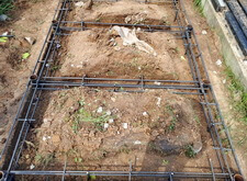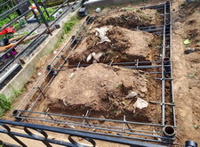 Выкапываем между захоронениями траншеи, между получившимся холмами ввариваем надёжный каркас в четыре арматурных кольца.