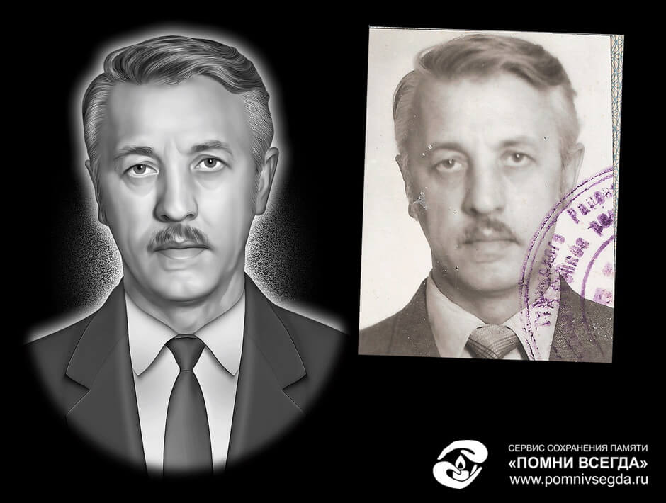 Заменена одежда на фотографии, портрет готов для нанесения ударно-гравировальным станком на памятник |