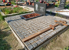 Переустановка памятника и укладка брусчатки на одиночной могиле