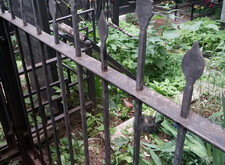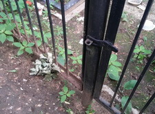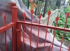 Это старая и мощная ограда. По словам клиентов ей более 60 лет. Достаточно длительный срок нижняя часть ограды находилась в земле, это ускорило коррозию металла, некоторые прутья разболтались, и задняя часть ограды провисла. Необходимо было отремонтировать ограду и покрасить ее.