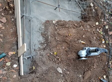 Затем мы сварили надёжный каркас из металлической арматуры, на котором в дальнейшем и будет держаться фундамент. Параллельно мы изготовили опалубку, которую и установили на некотором отдалении от железной конструкции.