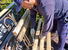 Первым делом мы приступаем к демонтажу объекта: разбираем основание, отодвигаем в сторону уцелевшие элементы надгробья.