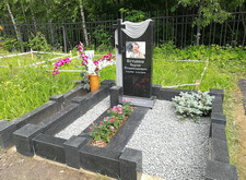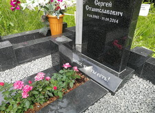 Затем приносим надгробье, предварительно укрепив на нём фотокерамику с изображением усопшего, устанавливаем его. Территорию участка засыпаем каменной крошкой, в цветник сажаем растения, в одном из углов места захоронения организовываем клумбу.