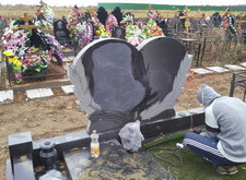 Далее мы полностью заполировали старый портрет и всю надпись, сделали это прямо на кладбище, не перемещая сам памятник.